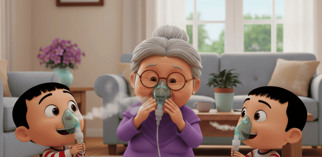 Nebulizer membantu lansia menerima dosis obat yang stabil tanpa perlu koordinasi pernapasan yang sulit.