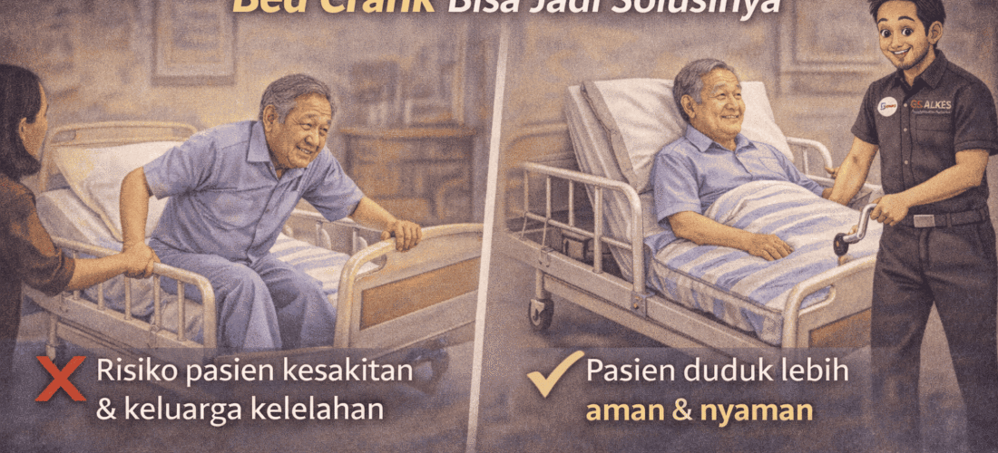 Jika pasien kesulitan duduk dari posisi tidur, bed crank bisa menjadi solusi praktis untuk membuat perawatan di rumah lebih mudah dan aman.
