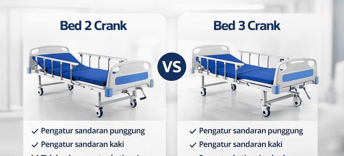 Di pasaran, jenis yang paling sering dipakai adalah bed pasien 2 crank dan bed pasien 3 crank. Meskipun terlihat mirip, keduanya memiliki fungsi berbeda dan cocok untuk kebutuhan yang berbeda pula.