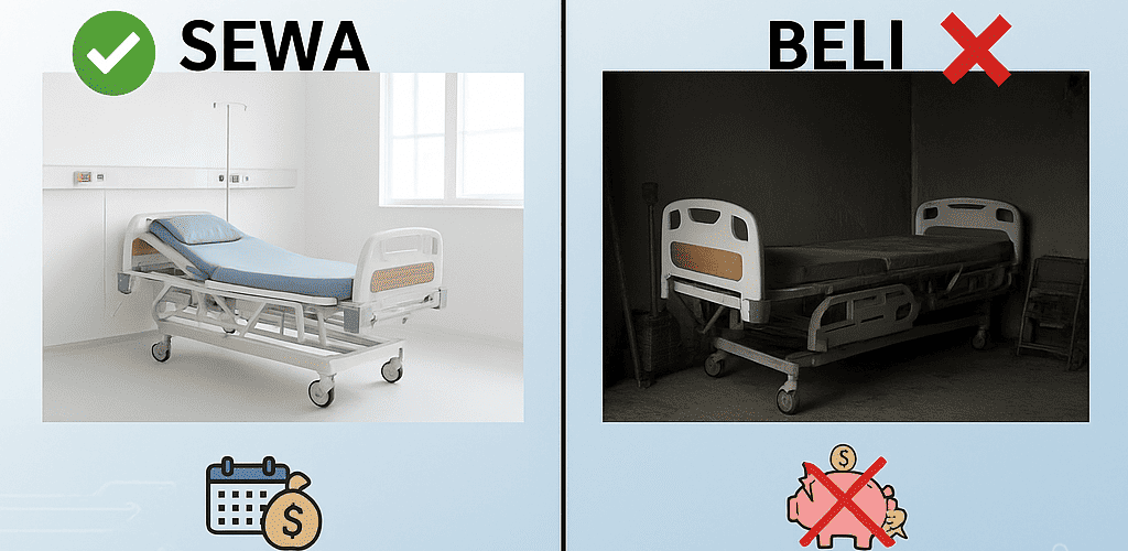 - Biaya Awal Rendah: Membeli Bed Pasien Elektrik atau Oksigen Konsentrator membutuhkan modal awal puluhan juta rupiah. Menyewa hanya memerlukan biaya bulanan yang jauh lebih kecil, membebaskan dana Anda untuk kebutuhan perawatan lain (obat-obatan, nurse care).